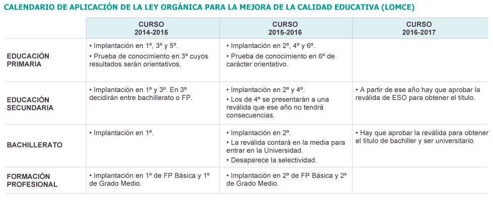 CALENDARIO DE APLICACIÓN DA LOMCE